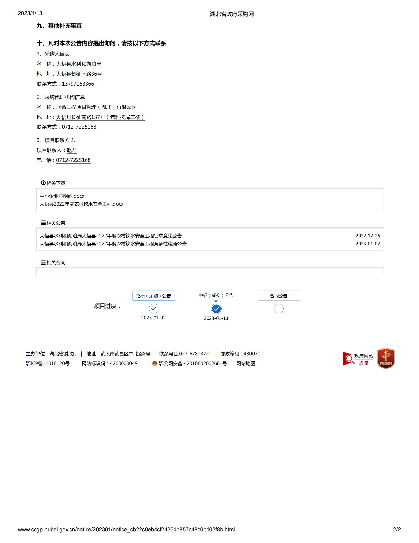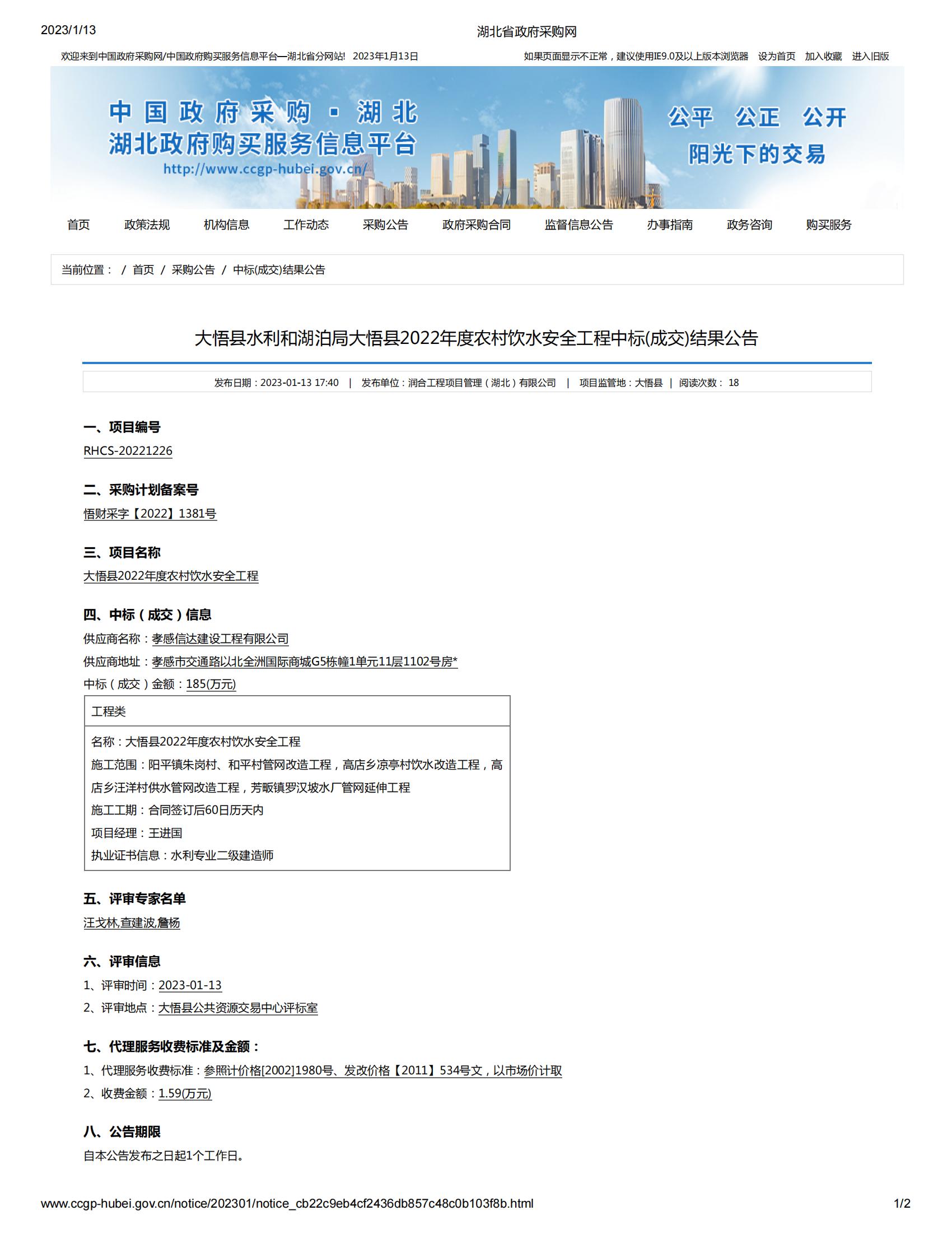 項目名稱:大悟縣2022年度農(nóng)村飲水安全工程